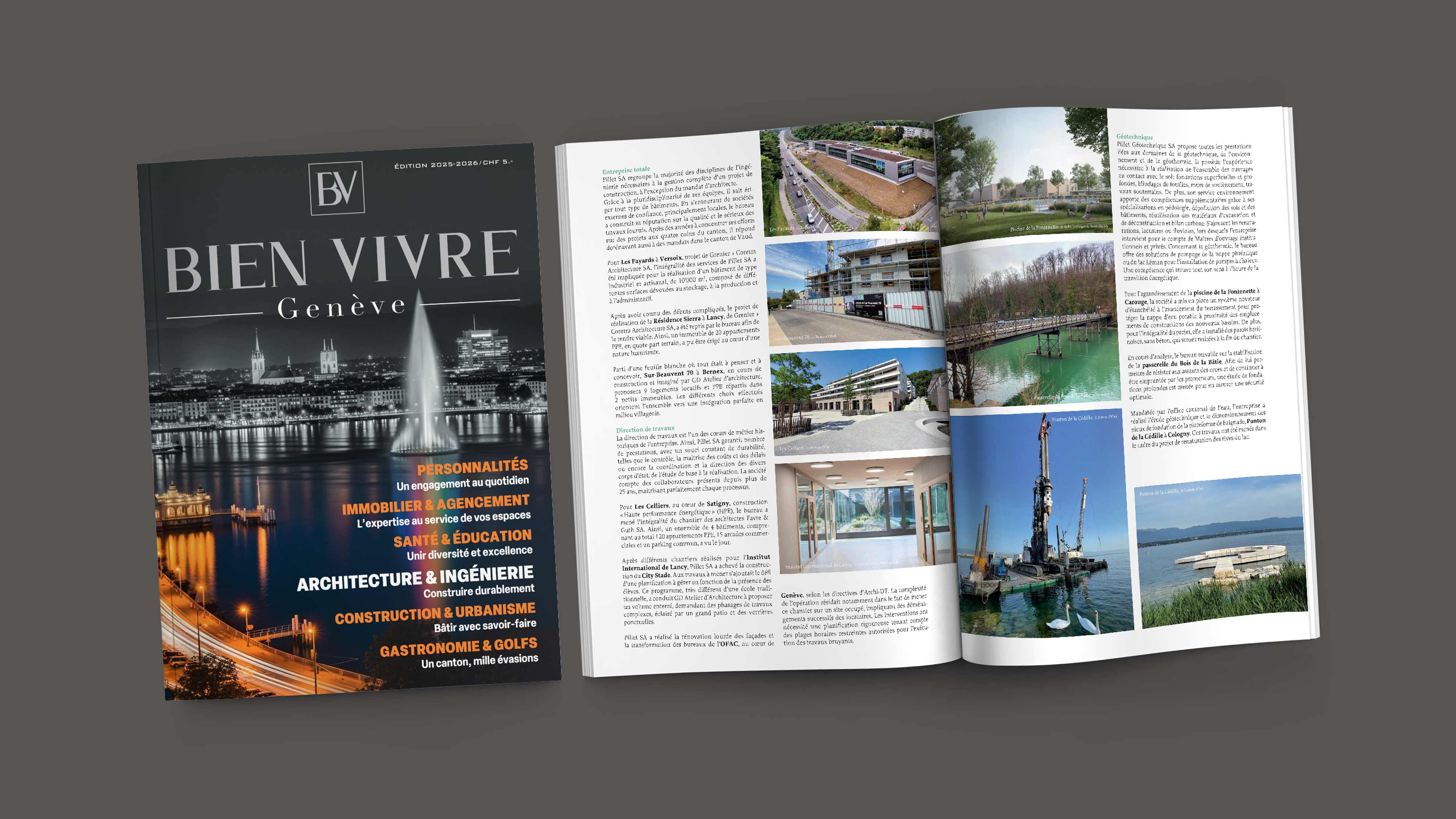 Dans le dernier numéro de Bien Vivre, le Bureau Pillet revient sur plus de trente ans d’expérience au service du développement et de la construction à Genève et dans la région. L’article met en avant la diversité des métiers réunis au sein du bureau : planification générale, direction de travaux, ingénierie civile, géotechnique, chauffage-ventilation ou encore développement immobilier.